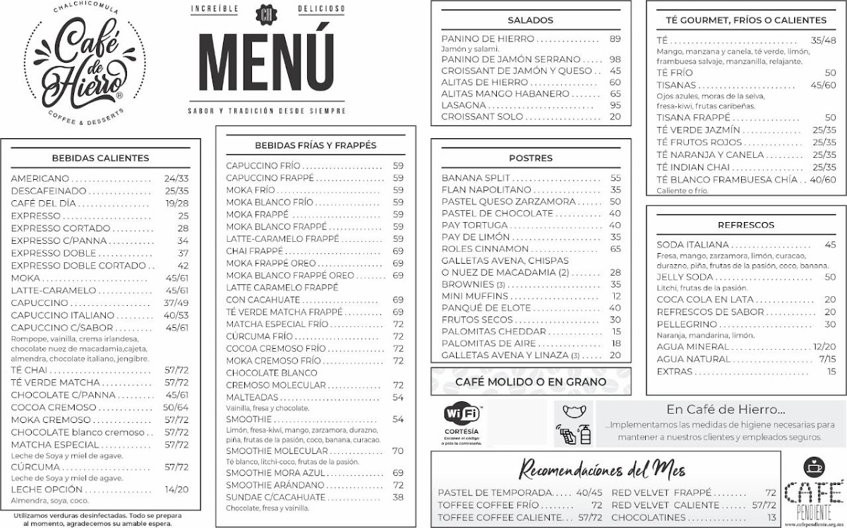 Welcome to Cafe De Hierro, nestled in the vibrant Centro Histórico of Cdad. Serdán, Pue. This charming café offers an inviting atmosphere where comfort meets aesthetics, creating the perfect spot to unwind. The menu boasts a delightful array of beverages, from classic favorites like rich cappuccinos to innovative concoctions that tantalize the taste buds. Customers consistently rave about the excellent quality and reasonable prices, making every visit an affordable indulgence.